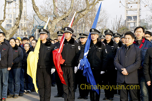 2018年元月1日8时18分,公司经警伴随着激昂的《阳光地代》、迈着整齐的步伐入场。随后,鲜艳的五星红旗在庄严的国歌中冉冉升起、随风飘扬。