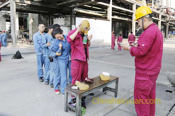 自6月10日起,在综合办和车间领导组织下,对操作和维修各班人员分批进行防毒面具使用、防化服穿戴和消防器材使用等各项比赛。比赛现场,员工们在领导和班长的指挥下,有序的参与比赛,结束后,综合办对各项比赛成绩进行汇总和评比,并进行公示和奖惩。对于成绩不合格员工,会统一进行培训直至成绩合格达标。比赛过程中,员工们通过实际操作可以查漏补缺,不断提高自身安全技能。