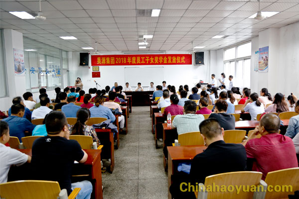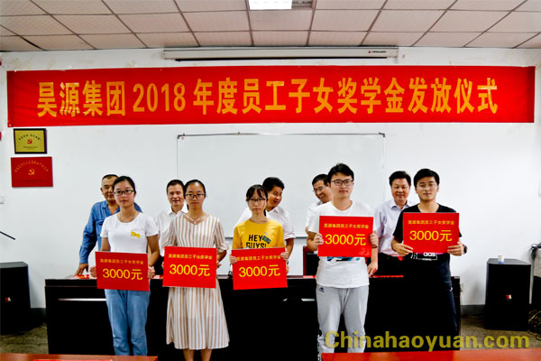 2018年度共有24名员工子女得到奖学金资助,发放奖学金共计69000元。其中3名优秀初中生考取阜阳一中,21名优秀高中生考取一本大学。公司副总经理张海生宣读获得奖学金同学名单,并代表昊源集团全体员工向他们表示祝贺。闻欣作为学生代表发言,她感谢昊源集团对员工子女教育的重视和鼓励,表示将心怀感激、立志成才,以优异的成绩回报父母、回报社会、回报昊源,并祝愿昊源集团蒸蒸日上,蓬勃发展。孙世贵作为学生家长代表,对昊源集团给予员工子女的关怀和奖励致以深深的谢意。他表示,将怀着一颗感恩的心更加努力工作,为昊源的健康、快速发展贡献自己的力量,为打造受人尊重的百年昊源而努力奋斗,祝愿昊源集团凝心聚力,砥砺前行,再创辉煌。
