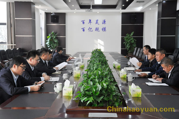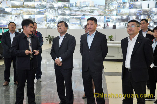 张君一行深入园区现场实地查看了园区生产、建设情况,在凡殿才的陪同下,来到园区中心控制室观摩,凡殿才就昊源的工业规模、园区一期项目建成情况、后期项目规划及产品市场行情和前景进行了汇报。