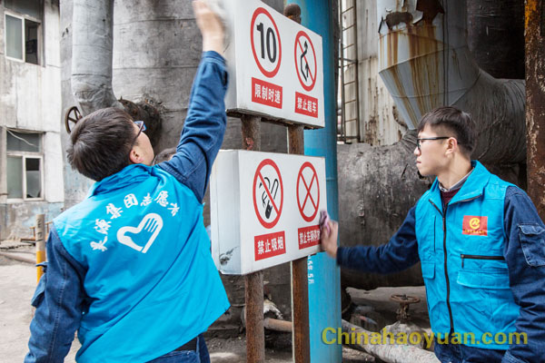上午,昊源志愿者服务队及团员青年共30多人先是来到昊源厂区内,开展义务清扫活动。大家用自带的扫帚、拖把等工具认真清扫厂区内道路两侧的地面、安全提示牌和企业文化牌等。随后,志愿者们又马不停蹄的赶往阜阳火车站站前广场、北京路街道,他们细心清除地面“杂物”、街道拐角垃圾。在清扫活动中,志愿者们积极踊跃,不怕脏、不怕累:有的队员用手掏出草丛里面的垃圾;有的用抹布擦去公交站牌面上的污渍,就连站台座椅都擦洗得干干净净。大扫除活动历时一个上午,志愿者们用清扫街道的实际行动感染着过往的阜阳市民,得到了周围群众的一致称赞。