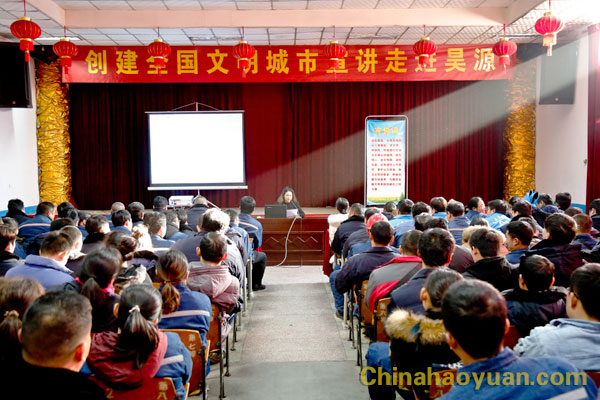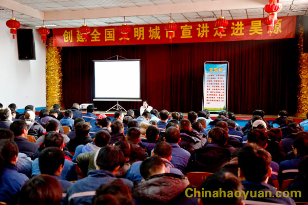 12月16日下午,由工会、团委组织的 “创建全国文明城市走进昊源”宣讲活动在公司礼堂拉开帷幕,公司高管、员工及昊源志愿者代表200余人到场聆听宣讲,会议由公司团委书记朱梅主持。