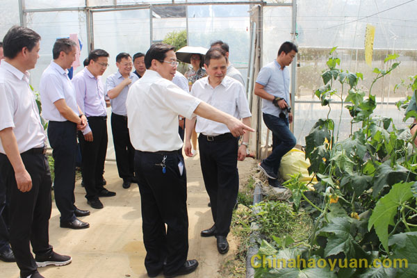 吴照明一行冒着酷暑深入田间地头,实地查看了普惠农业公司现代化绿色无公害蔬菜大棚内长势良好的各种瓜果蔬菜。杨捷在大棚内现场介绍了普惠农业公司目前种植的蔬菜种类,以及如何应用先进农业管理方法进行蔬菜种植管理过程。参观人员纷纷表示通过实地参观,打消了疑虑,增强了信心,坚定了决心。