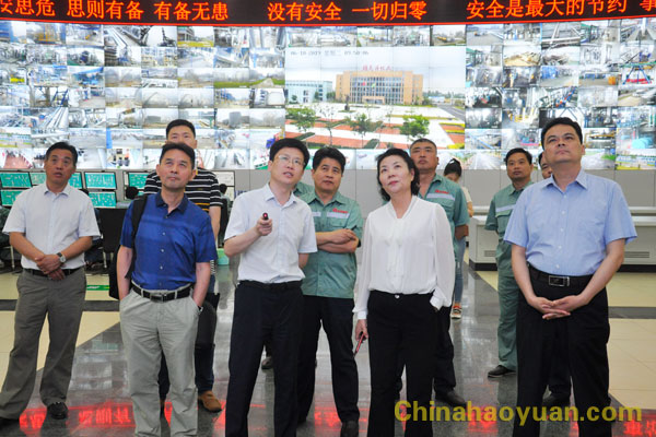 余泳一行在凡殿才陪同下实地参观了园区苯乙烯、甲醇生产装置,凡殿才详细介绍了园区产品生产工艺、成本情况和市场价格等情况。他说,为了确保昊源园区新项目的本质安全,项目组自项目的选择、论证、设计到施工及运行管理均采用国内最先进的工艺及设备和可靠的安全仪表系统,全面提升园区装置自动化、信息化水平。在园区中心控制室,余泳仔细查看了报警记录,详细询问了园区报警系统运行情况。凡殿才介绍说,昊源的报警系统分为三个层次,第一通过有毒有害气体报警仪进行监测,园区各类检测器均已通过通讯方式集成至中心控制室集中显示;第二通过园区的实时监控系统进行监控,园区关键装置、重点部位、重大危险源均采用视频监控;第三通过现场人员巡检,园区现场24小时均有人员定时进行巡检,确保问题出现时能第一时间发现。余泳对昊源一流的生产工艺和控制水平表示赞赏。随后,凡殿才为余泳一行介绍了园区项目规划、产品市场行情、园区安全设施设备配备等情况。