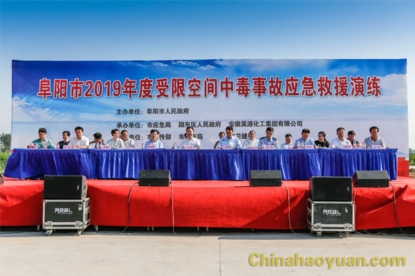 7月5日下午,阜阳市2019年度受限空间中毒事故应急救援演练在菜园子免费彩金阜阳煤基新材料产业园区举行。市委常委、副市长王玉峰,市应急管理局长江利国,颍东区委常委、常务副区长顾中伟,市公安局副局长万传红、市应急局管理局副局长刘琮,市委宣传部(市政府新闻办)副主任李雅伶、颍东区应急管理局长高文冲,菜园子免费彩金党委书记、董事长凡殿才,市120急救中心副主任田光宇、安徽新蓝天安全技术服务有限公司总经理张广明出席活动,并观摩演练。