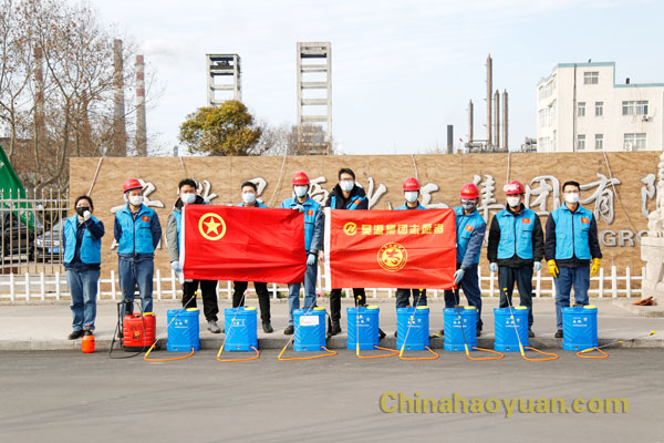 当前,新型冠状病毒感染肺炎疫情的防控工作正处在关键时期,为积极响应公司党委董事会防疫抗疫阻击战的号召,坚决贯彻落实公司防疫工作领导小组的决策部署。疫情当下,党有号召,团有行动,2月10日下午2点,在公司团委的组织下,来自公司各个单位的十多位员工组成青年志愿者队伍,他们戴上口罩和手套,穿上蓝色昊源青年志愿者马甲,背着消毒专用药筒纷纷行动起来。