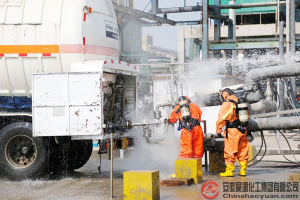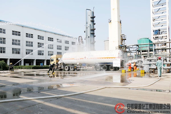 演练开始后,当班充装人员在监护LNG充装过程中发现充装鹤管液相与罐车充装口连接处冒出大量白烟,在戴好面罩前去查看过程中,因垫片收缩不均匀导致泄露突然增大。充装人员立即报告班长,班长进行先期准备及处理工作,联合车间在接到汇报后,立即启动车间级应急预案。随着事故进一步扩大,经请示公司副总经理张海生后启动公司级应急预案。现场指挥部迅速集结安全、消防、救援、工艺、环保共五支应急救援小组开展救援,经过各小组的共同努力,最终于16时40分救援成功。整个演练过程组织严密、秩序井然、场景逼真、气氛紧张,达到了预期的效果。