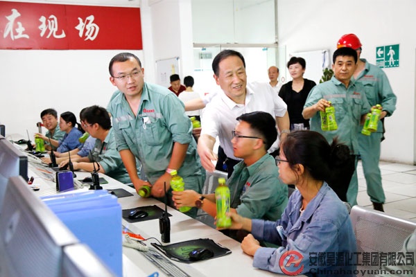 随后,许建清一行深入航天炉生产现场和中心控制室,详细了解一线员工的工作条件、防暑降温措施和劳动保护情况,为奋战在高温一线的员工亲自送去降温解暑慰问品,对广大员工为安徽经济发展作出的贡献表示充分肯定和感谢。