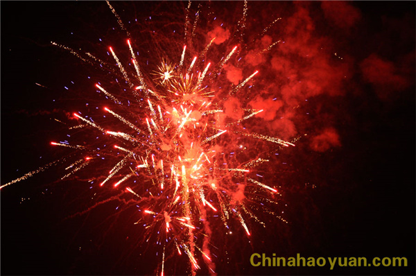 在烟花燃放现场,一朵朵礼花在昊源上空绽放。天空中,五彩缤纷的礼花弹,璀璨夺目。各式礼花姹紫嫣红、群芳吐艳,一片辉煌。正在行走中的人们驻足观看,观赏的人群不时发出赞叹声。璀璨的烟火宛若一个个动人的音符,在夜空里演奏出一曲绚丽的乐章。