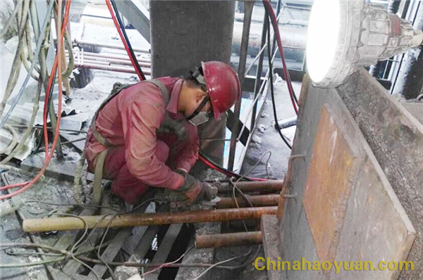 5#锅炉系统停车后,动力处便安排人员对水冷壁进行全面的壁厚测量,在测量过程中发现水冷壁多处管壁都存在壁厚减薄的现象,并对减薄的管子及区域进行了标记以便后续更换。因本次5#锅炉水冷壁通过检测需要更换部位较多,而且在组对和焊接水冷壁过程中,对铆焊工技术及责任心都有较高要求。为此,化机公司在接到检修任务后,每天合理安排人员并及时与锅炉车间进行交流沟通,派出精兵强将,加班加点积极配合锅炉车间对5#锅炉进行检修,争取在保证安全的前提下,用最短的时间保质保量完成本次5#锅炉检修工作。