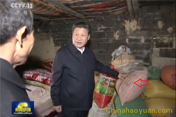 24日下午,他沿着山路乘车1个小时,来到金寨县花石乡大湾村考察脱贫工作。在贫困户陈泽平、汪能保、汪达伟、汪达开、陈泽申家,习近平详细察看住房和陈设,了解贫困原因、贫困程度,通过扶贫手册看脱贫措施定了哪些、落实怎么样。当地干部沿途向总书记介绍茶园、鱼塘、小型光伏电站等扶贫项目,习近平一一询问生产经营、成本效益,同大家一起算脱贫时间账。(作者注:在与村民们亲切交流时,习总书记手指处为菜园子免费彩金所生产的尿素包装袋。)