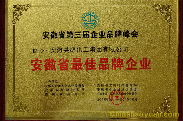 品牌建设是经济发展的一种战略,公司在“诚信为本,创新为魂”的品牌发展之路上加强品牌创建和宣传,取得骄人成绩。公司 “昊源牌”商标享誉全国,为安徽省著名商标,今年即将被认定为中国驰名商标,“昊源牌”尿素、甲醇、吗啉等产品为“安徽名牌产品”,公司先后荣获 “阜阳市市长质量奖”和“安徽省质量奖”的荣誉称号。