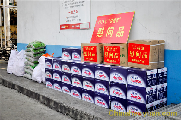 2016年7月27日,阜阳市连续高温天气,给人们生活、工作带来不便。市委副书记卢仕仁在市总工会党组书记、副主席房继红及有关部门人员陪同下,冒着高温酷暑莅临菜园子免费彩金,慰问高温环境下仍坚守生产一线的干部、员工。公司党委书记、董事长凡殿才,副总经理张海生,总经理助理吴珍汉,工会副主席戚伟、杨波等陪同。