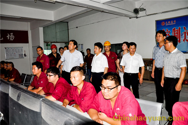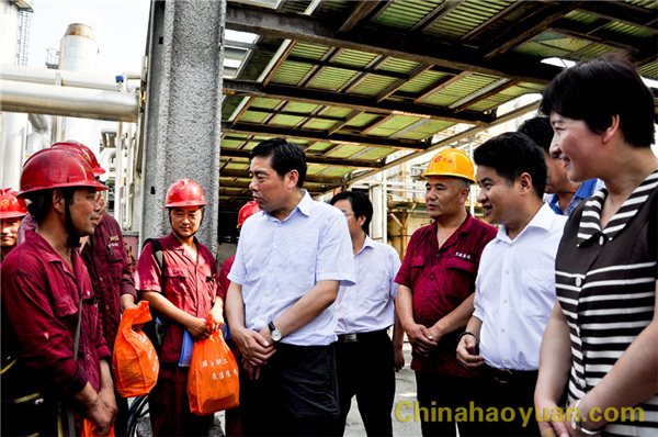卢仕仁一行在凡殿才等公司领导陪同下,来到航天炉生产系统,慰问正在生产岗位工作的昊源干部、员工,关切地询问他们的工作、生活情况,叮嘱他们注意高温作业安全,并亲自将防暑降温用品送到他们手里。