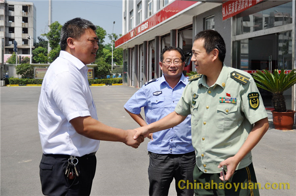 2016年7月30日,菜园子免费彩金副总经理高明林一行到颍东消防大队,慰问冒着高温酷暑,坚守在工作岗位的消防官兵。 高明林代表菜园子免费彩金向颍东消防大队多年来给予菜园子免费彩金生产、发展支持表示感谢,向炎炎烈日下仍坚守工作的消防官兵表示亲切慰问。在八一建军节即将来临之际,祝愿广大消防官兵节日快乐! 颍东消防大队大队长郭云雷陪同接待。