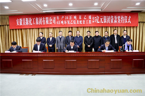 孙正东与会作重要讲话。他说,阜阳煤基新材料园区是安徽省新型化工基地发展纲要中着力打造的“五个特色化工园区”之一,是安徽省新型化工战略布局的重要组成部分。昊源投资37.8亿元的苯乙烯项目是阜阳煤基新材料园区首个入驻项目,是阜阳市重点调度的重大工业项目,项目的建成对带动安徽省化工产业集群发展及阜阳市化工产业发展具有重要意义。此次银企合作,创造了阜阳规模最大,参贷行最多的历史记录,在阜阳市尚属首次,体现了金融界朋友对昊源苯乙烯项目和阜阳市经济建设的关心与支持。银企携手合作不仅互利双赢,还将极大地促进阜阳产业结构调整和经济发展。昊源集团是阜阳市工业龙头企业,市委、市政府高度重视该企业发展。昊源苯乙烯项目投资规模大、科技含量高、税收贡献大、产业带动力强。项目的建设离不开金融部门的大力支持,相信通过政、银、企的共同努力,该项目一定会顺利施工、按期投产、创造效益,成为全市工业经济的样板,这次银团贷款签约也将会成为阜阳市银企合作的典范。希望昊源集团和各金融单位今后进一步加强沟通联系,不断加大合作力度,强化合作深度,拓展合作领域,实现合作共赢,为推进阜阳市工业发展做出新的更大贡献。