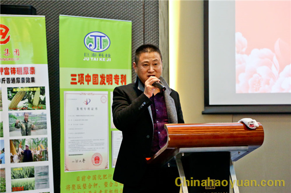 北京巨泰科技有限公司技术研发部经理孔令亮与会介绍了聚肽螯合钾富锌硼尿素的使用效果与作用机理。