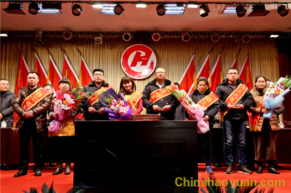 公司副总经理张海生宣读公司《关于表彰2016年度先进集体、先进个人的通知》。共表彰先进单位7个、先进班组20个、先进中层管理者29名、先进基层管理者68名、先进员工149名、优秀党员16名、优秀团员28名、优秀工会会员46名、先进党支部2个、先进工会分会2个、先进团支部2个、安全生产先进单位2个、五好家庭5个。出席会议的领导分别为先进集体、先进个人和五好家庭颁奖。