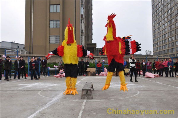 “鸡”祥如意项目让人难忘。几位穿有提前精心准备的卡通鸡服装的员工,随着《鸡叫进行曲》的节奏翩翩起舞,时而拍拍鸡翅膀、时而扭扭屁股,给观众们带来趣味运动欢乐,赢得了在场观众一阵阵热烈的掌声和喝彩。考验团队精神的夹气球跑项目,需要每组六人相互协作,每个人双手举过头顶,把气球夹在胸前一起向前跑。多组队员并排在起跑线上,裁判喊“开始”时,队员相互配合向前跑,最先到达终点的队获胜,一个气球掉落下来则全队重新开始。该比赛中每队的队员都心连心、肩并肩,齐心协作到达终点,正是对团队协作的最好诠释。同时,在各项比赛间隙,都设有企业文化知识问答环节,员工们在娱乐的同时,又巩固了企业文化知识。