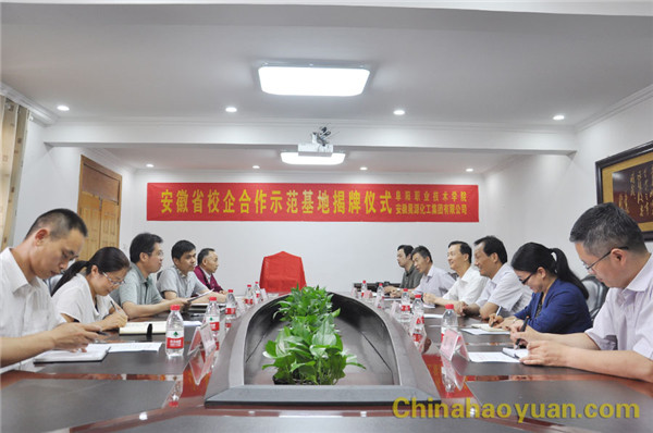 日前,省教育厅、省经济和信息化委员会、省国资委联合授予昊源集团“安徽省校企合作示范基地”荣誉称号。6月12日,授牌仪式在昊源集团举行。昊源集团总经理助理潘家成、阜阳职业技术学院党委副书记邹斌、副院长鹿琳及相关人员出席揭牌仪式。